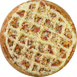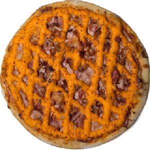 Bacon, Frango desfiado, Lombo, Molho de tomate, Mussarela, Requeijão cremoso