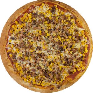 Bacon, Milho, Molho de tomate, Mussarela, Orégano