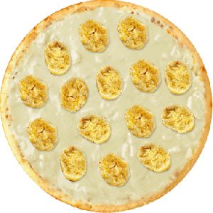 Frango desfiado, Milho, Molho de tomate, Mussarela, Orégano
