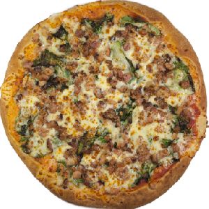 Alho frito, Brócolis, Molho de tomate, Mussarela, Orégano, Parmesão