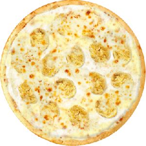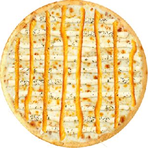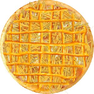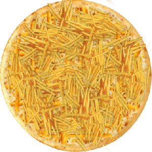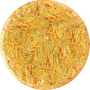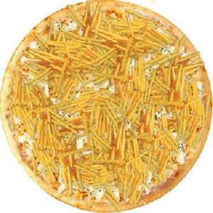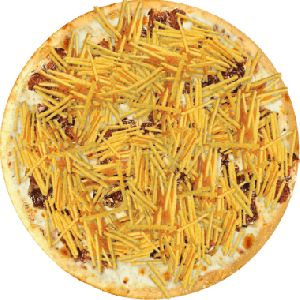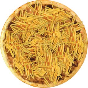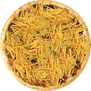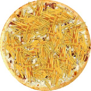 Batata palha, Cheddar, Frango desfiado, Molho de tomate, Mussarela, Orégano