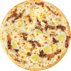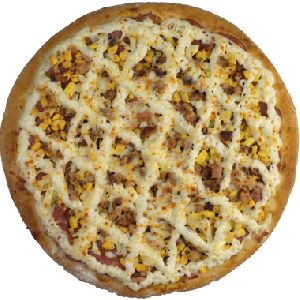 Bacon, Calabresa, Milho, Molho de tomate, Mussarela, Orégano, Ovo, Requeijão cremoso